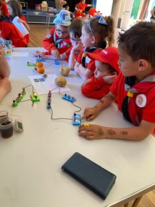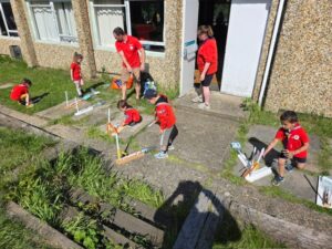 On Saturday 17th May 1st Knaphill Squirrels joined other Squirrels in the Woking District for the first ever Woking District Science Day, Scientific Squirrels. Squirrels had a brilliant time taking part in various experiments including guessing to see if they could identify different smells, putting their hands in boxes to guess what they could feel, discovering how small electric circuits work and seeing how far they could fire the paper rockets they made.  They also planted grass to make grass heads, using PH indicators to discover what happens when it is added to different substances such as vinegar and made white light spinners.