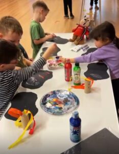 Squirrels enjoyed a fun sleepover painting, practicing knife skills with playdoh. They made shields and fireworks.