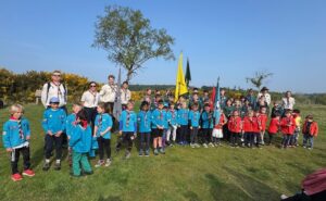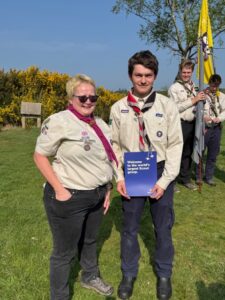 1st Knaphill Scout Group celebrated St.George’s Day 2025 by renewing their promises during a hike on Chobham Common.  We had a great turnout and fantastic weather.  Congratulations to leader Charlie who received his wood beads from Kath, District Lead Volunteer, for completing leader training.